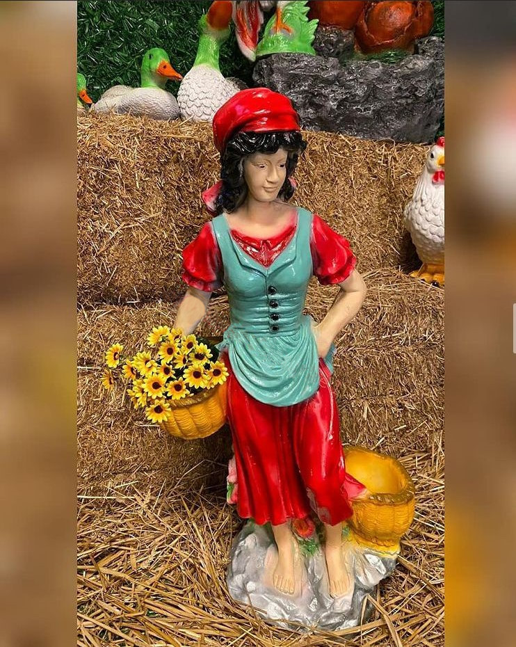 Polyester El Boyama Sepetli Kız Dekoratif Bahçe Süsü 80 cm